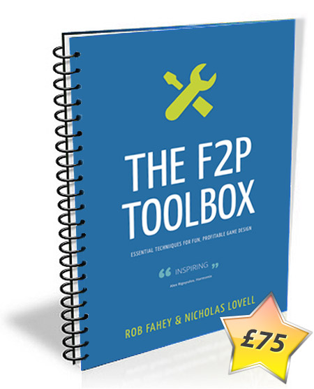 Containing over 150 pages of practical advice and insight, The F2P Toolbox is built around 54 'cards' - core ideas that every free-to-play designer needs to consider for their games. Work alone or with a team, you'll find The F2P Toolbox invaluable for your design process. It'll show you the right questions to ask of your design - and point you at the answers that will make your game successful, profitable and most of all, fun.